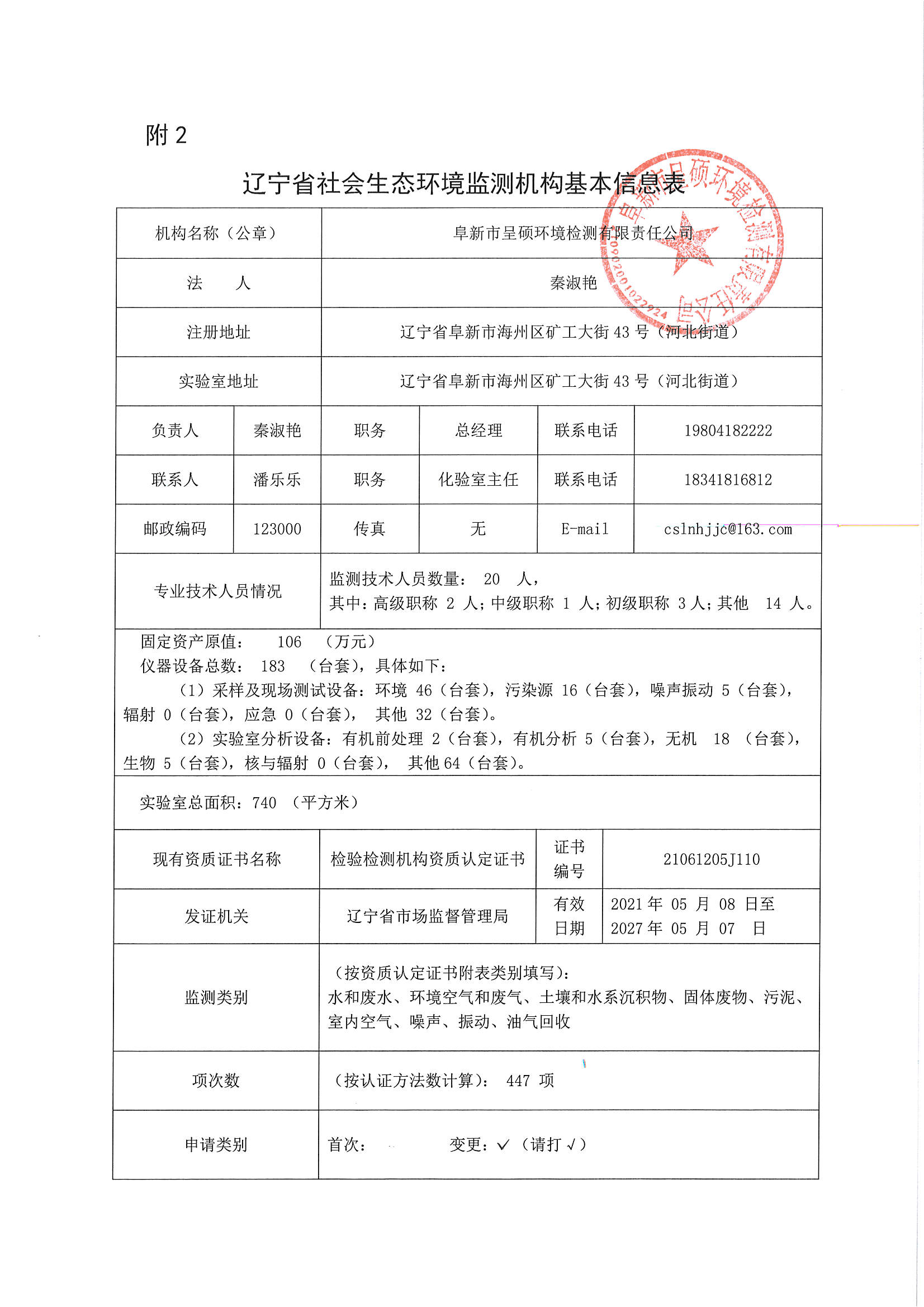 辽宁省阜新市海州区矿工大街43号 Chengshuo (Liaoning) environmental testing Co., Ltd